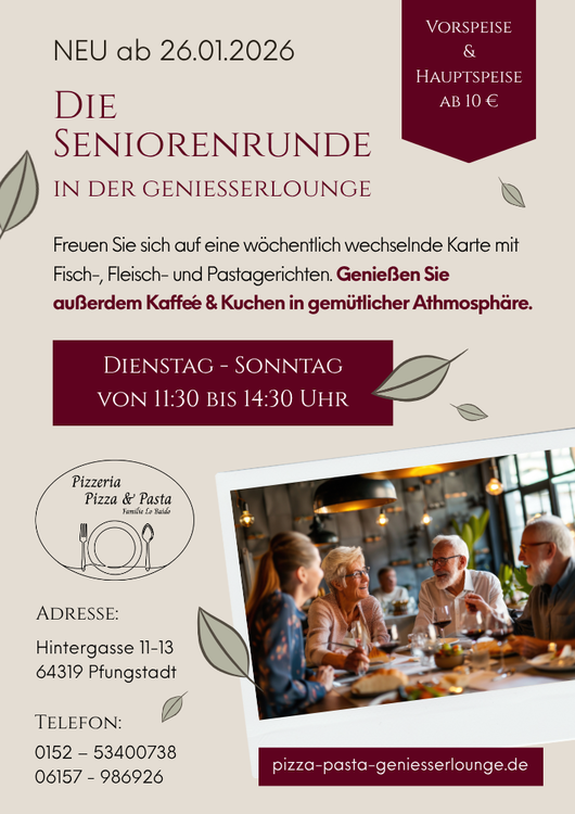 Liebe Gourmet-Freunde,auf der Suche nach einem neuen Lieblingsrestaurant sind wir durch Zufall auf die Genießerlounge Pizza & … Mehr Pasta gestoßen.Wer meine anderen Bewertungen kennt, weiß, dass es hier nur wahrheitsgemäße Bewertungen gibt.Besonders hervorzuheben ist, dass selbst auf die sensibelsten Unverträglichkeiten mit Herz und Seele eingegangen wird. Hier steht der Gast im Vordergrund und der Fokus liegt definitiv auf hochwertigem Essen zu absolut fairen Preisen.Wer also ein Restaurant sucht, in dem man sich pudelwohl fühlen will, gutes Essen genießen möchte und man auf eine freundliche Bedienung wert legt, ist hier genau richtig.Absolute Empfehlung!***Schaut Euch auch gerne meine anderen Bewertungen an*** -